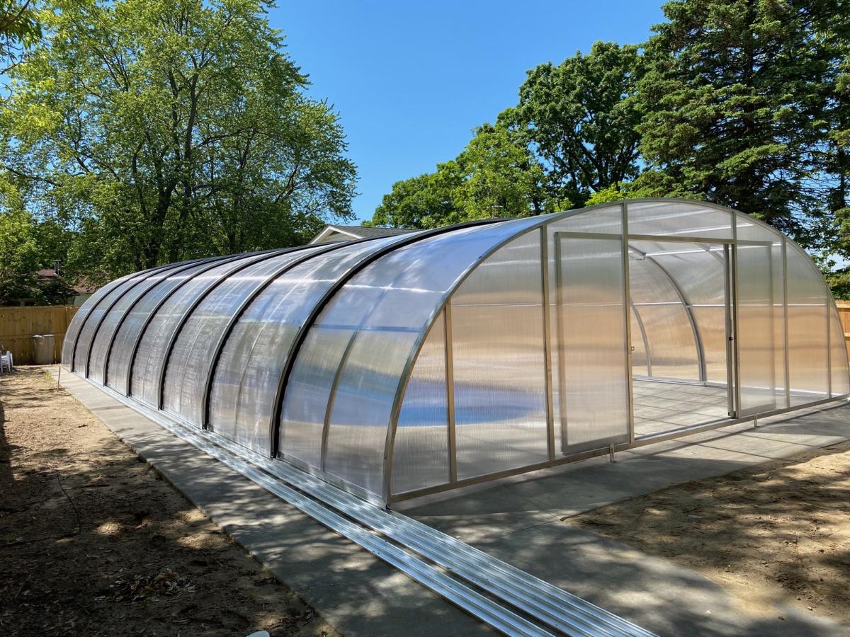 I have lost my contact information and forgotten your names, but I would like to be included in your list of happy and satisfied customers. My pool is in Orem, Utah. I installed your ellipse - 58' long by 28' wide enclosure. With it in place we used our pool everyday all winter, night and day. The interior temperature was always very comfortable even on very cold overcast or blizzard days. It was never cooler than about 80° inside but 0° outside. We kept the water at 90° 24/7. The snow just slides off the top, so no worries about having to pull it down. We have had a number of inquiries about the enclosure and we are always pleased to give you 5-stars. Rod Felt